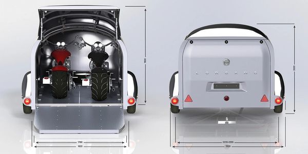 Aerodynamisch, stromlinienförmige Design – ist eine Kombination aus glatten Linien und ausdrucksstarken. Der Anhänger hat ein möglichst niedriges Profil und ähnelt mehr einem Retro-Rennboliden als dem Anhänger